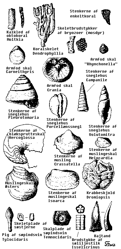 Eksempler på fossiler der er at finde i Fakse kalkbrud