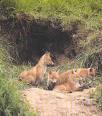 Ræven med sine unger foran hulen. |