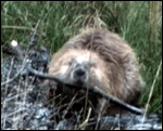 Bæver på vej med en afgnavet gren. |