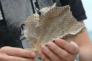 Eksempel på skelet fra bryozoer som kan sammenlignes med et højhus, hvor der har levet utallige enkelt individer