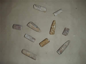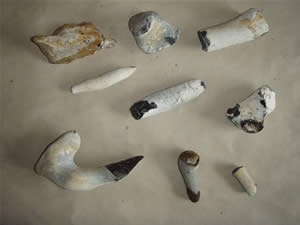 Vættelys og forskellige forsteninger i flint. Foto: TB |