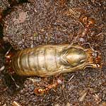 I starten af juni forpupper larven sig nede i myrereden.