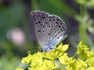 Sortplettet blåfugl kræver, at der enten er timian eller merian til at lægge sine æg på.