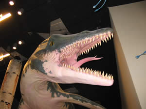 Mozzaen var en slangeøgle, der levede i havet på samme tid som dinosaurerne. Denne 6-8 tons store kæmpe må have været mindst ligeså frygtindgydende som nutidens spækhuggere. Med det dobbeltrækkede tandsæt og den slanke og muskuløse krop må den have været en formidabel jæger. Man kunne forestille sig, at dens livret må have været blæksprutter, med alle de fossiler der i dag findes efter disse.