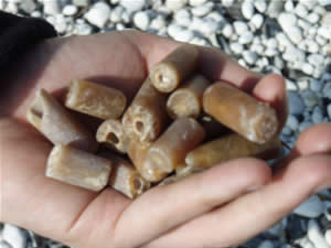 Hos søpindsvin er det ofte flintestenskernen man kan se. Det vil sige et aftryk af skallen, der efterfølgende er slidt væk.