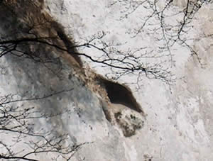 I Møns Klint er der gode muligheder for at gemme en rede. Inde i hulen på billede 2 ligger hunnen på sine æg, mens hannen er ude at jage. Hunnen forlader ikke sine æg, før de er udruget. |