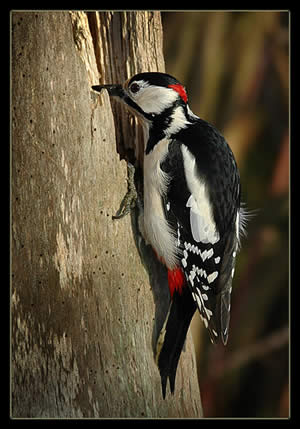 Stor flagspætte er let at kende på sit lange næb og sorte og hvide farver.