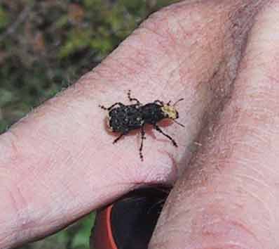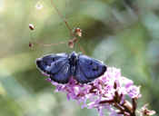 På og ved Møns Klint findes 2 meget sjældne insekter. Det er sortplettet blåfugl (billede 7) og hvidhovedet bredsnudebille (billede 8 og 9).